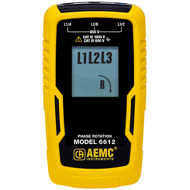 The AEMC 6612 is a compact and rugged instrument designed to identify phase rotation on 3-phase systems and detect live and open/de-energized phases. Ideal for installing rotating machinery or motors, and for checking generator output, this meter ensures proper sequencing for three-phase power systems.